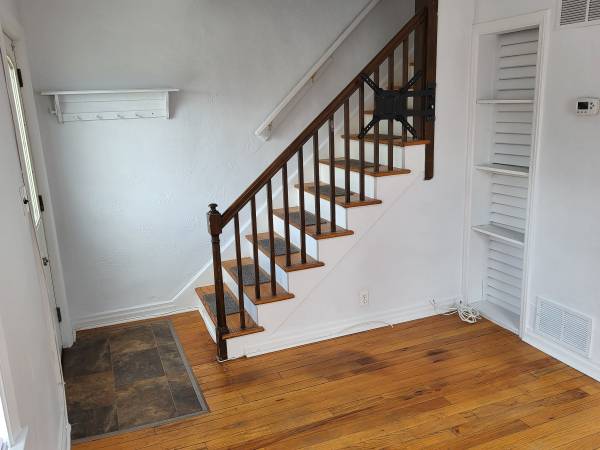 Clean end unit townhouse with 2 bedrooms, living room, dining room, modern kitchen, basement family room with laundry room and storage. Walk out to rear parking and a fully fenced yard. Gas heat and appliances, central air conditioning. NO pets allowed.