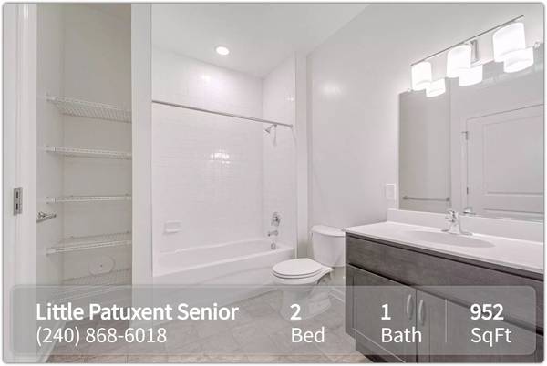 Welcome to Little Patuxent Senior Apartments! Let our photos take you on a tour of your future home and get a glimpse of the exceptional lifestyle that awaits you. From the spacious open-concept layouts, to modern finishes, and thoughtful features like in-home washers and dryers and energy-efficient appliances, every detail is designed to enhance your daily living experience. Whether you're enjoying the thoughtfully designed interiors or the welcoming community spaces, Little Patuxent Senior Apartments is a place you'll be proud to call home.