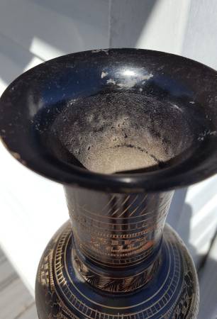 Vintage 1980's Black Lacquered Brass Etched Vase purchased in India