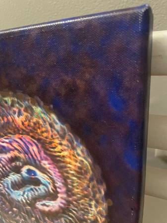 Cymatic Art by Sozra Art. Local artist. 8x10 mounted canvas. Design is printed on the sides and it’s ready to hang up. See pictures of damage. Print is scuffed in multiple locations. Can be touched up by someone artistically inclined. Send an offer. Local pick up only.