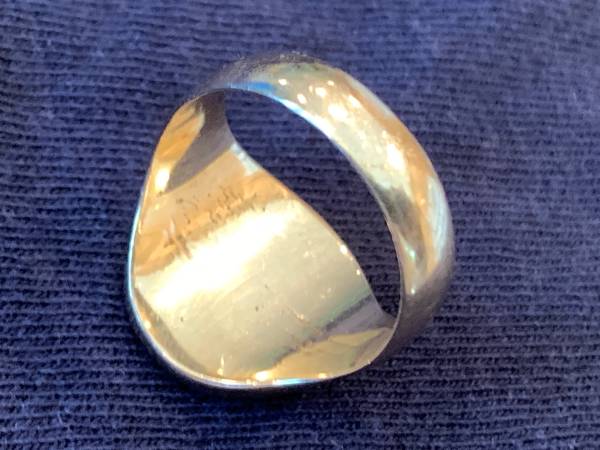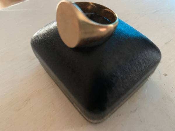 never engraved, solid back, nice large portrait oval, blank canvas for your imagination. underpriced will size 9 - 15 do web image search "18k gold signet ring" for info and ideas Tiffany & Co....