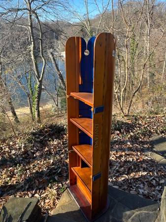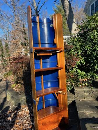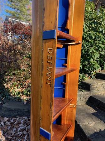 Antique c1930s Cedar Wood Rowing Shell Bookcase (name: Defiant). Highly decorative this beautifully hand crafted Cedar wood rowing boat is now a completely unique bookcase, shelves or display piece. Condition commensurate with age and use. Cash only. Buyer must pick up.
