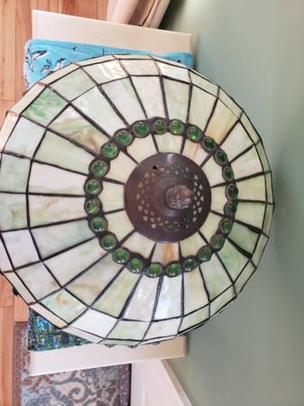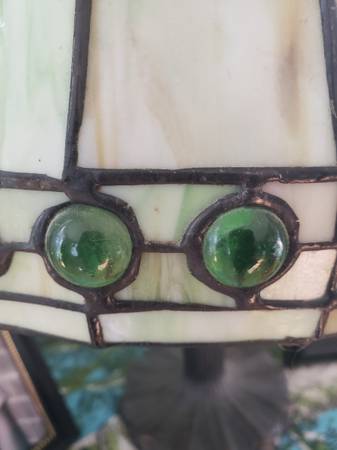 Beautiful green stained glass table lamp. Takes 1 bulb. Mint condition. Unique with green gems. 14 inches across for shade. 20 inches tall. $300 Cash. Firm Local pick up. Deale, MD