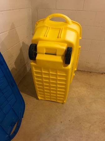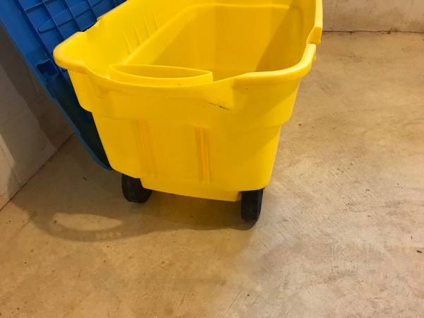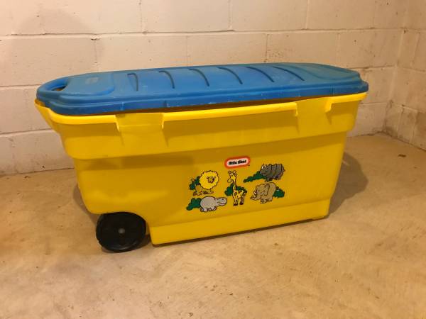 Rubbermaid Little Tikes Toy Storage tote / box with wheels Blue lid slightly faded. Durable plastic storage for toys $40.00 cash Measures approximately 42 by 21 by 19