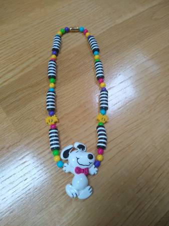 AVON Vintage Child's Snoopy and Woodstock Beaded Necklace Snoopy is 2" x 1.25" Chain is 14"