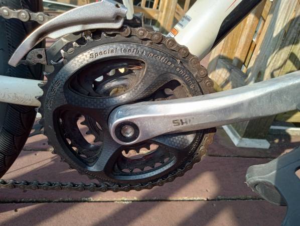 This bike is in great condition. This bike is currently set up as a commuter bike. The bike has been upgraded with new semi slick tires that are great for bike paths and city street. The bike also has ergonomic saddle, strap in pedals, and Ibera water bottle cage. I am asking for 260 or best offer.