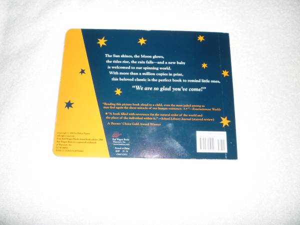 A beloved classic for more than twenty years, this luminous new edition includes a note from the author and a refreshed jacket design. In simple words and radiant collages, Debra Frasier celebrates the earth and extends an exuberant welcome to each member of our human family. Accompanied by a glossary explaining such natural phenomena as gravity, tides, and migration, this unforgettable book affirms the special place each child holds in the world.