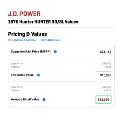 30SL Hunter comes with new Yanmar 2GM20F fresh water cooled 18hp diesel engine installed in 2005. Engine been serviced and new impeller was installed in November 2025. It starts right up and runs great. Main and jib sails are in good condition. Furling. 30 amp AC power shore power. Pressure water system. Sweden made denatured alcohol stove. Build in ice box refrigerator. Manual pump marine toilet. Shower. Battery in good condition. Dewalt battery charger. Fluke anchor. Hunter owner manuals.