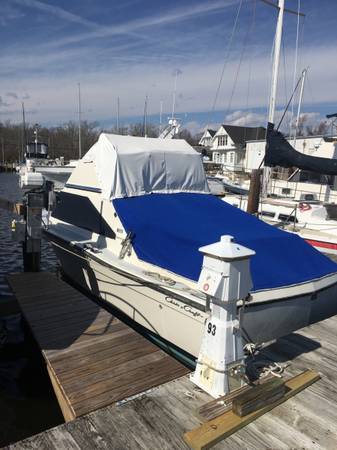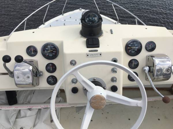 A great boat for the bay!!! Deep V hull cuts through chop like butter. Restored and repowered in 2010-2011 with new fuel injected Crusader 5.7 fresh water cooled motors and 150 gallon gas tank. Sleeps two in the air-conditioned V-berth and two more on the dinette table which makes a bed. Upper and lower helms with hydraulic steering. Four rod holders built into the gunwhales. Email me with contact info and I will call you.
