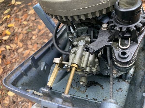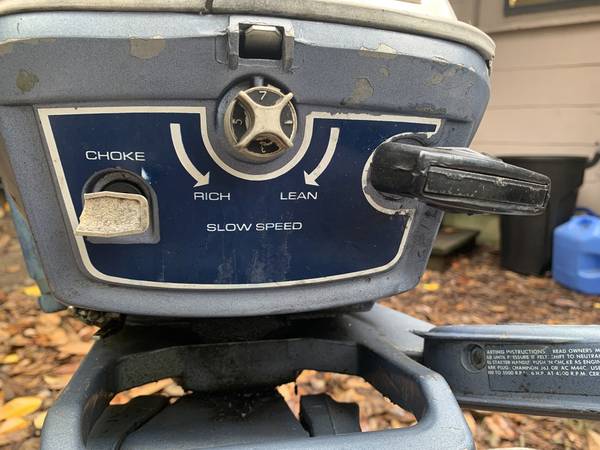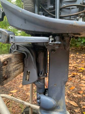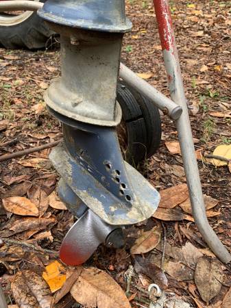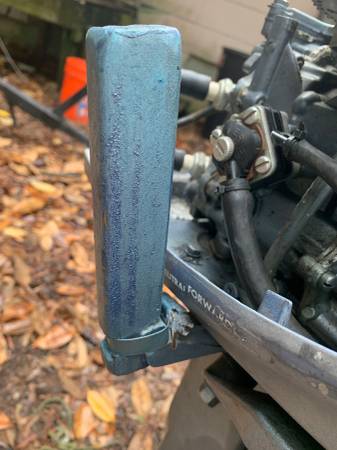 This gasoline motor looks a bit rough but it starts and runs well. Well used, in good running condition. Original shift lever broke off and was repaired using materials at hand. Works well. Two stroke, two cylinder, 6 horsepower, runs fairly quiet for a two stroke. See video...Price reduced from $250 to $200 because I don't have a working fuel tank to go with it, You will have to get that somewhere else.