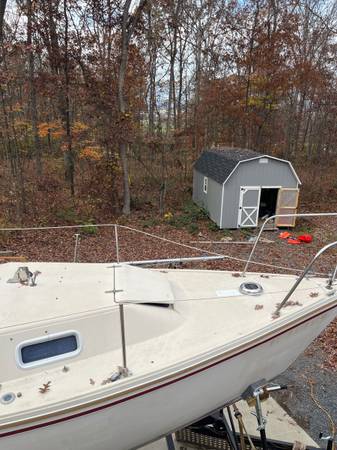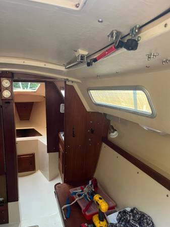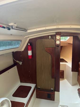25ft fin keel , inside cushions, cockpit cushions,nice bimini..2burner origo alcohol stove(non pressure)very clean inside,no leaks,all windows have been resealed,LED lights ,roller furler ,inside,pop top assist,new whale bilge , pump,mast has been rewired,new LED lights,new vhf cable, no catalina smile...keel bolts are in GREAT shape ..just removed the fresh water tank and sanitized with all new supply hoses ..she is ready to sail,just add water!!!! trailer has been custom built for this boat,4 wheel brakes new tires, new lights, main sail is good,head sail will have to be replaced soon , 2019 ,9.9 mercury ob long shaft electric start with generator,just serviced,with new water pump , includes lots of extras ,if you need more pictures let me know... i can help with delivery..