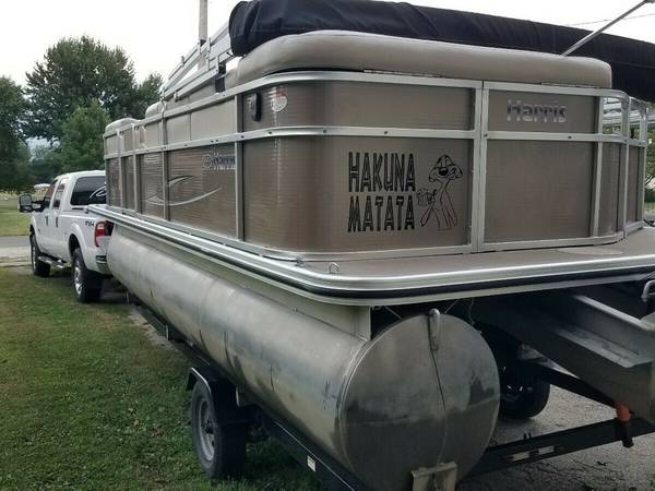 Owned this Harris pontoon for years and kept it inside. Only 179 hours on it. The Mercury EFI 4-stroke runs steady. The pontoons are the larger type.