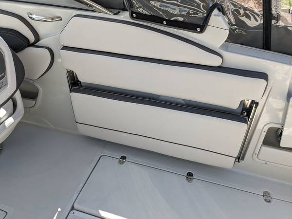 Loaded with standard Feature: Options include: - Full Canvas ( Sides, Aft Curtain, Bow and cockpit covers - Bow filler Cushions - King Fish Hard Top Rod Holders - Fender Clips - Electric Head Upgrade - LED Under Water Lighting package with remote - Ski Tow Pylon - Trim Tab Indicators - Windshield Wiper The Finseeker 240 DC is designed for serious fishing, with luxurious touches and entertainment features for the perfect all-around family boat. Port and starboard cockpit bench seats stow away for additional fishing areas. The heavy-duty hard top provides cover from sun and inclement weather. And the head compartment is an important convenience for family fun and comfort.Basic Information: