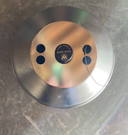 Magma Marine Kettle Gas Grill. Attaches to boat stainless steel rail. Uses propane canisters (not included). 14 inch diameter. Very good condition. $100