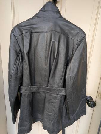 I am downsizing and have an XL black Croft and Barrows 100% leather belted coat with a maroon quilted lining for sale.