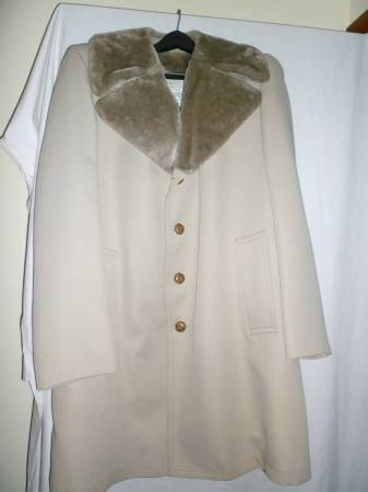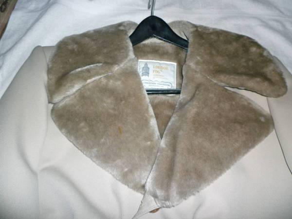 Nice, London Fog Man's Tan Dress Coat with Large Plush Velour Collar, Size 40 Reg. Warm, Warm, Warm. Very Nice Completely Lined with Plush Velour