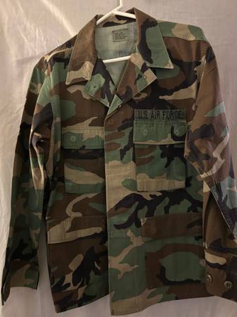 Camo Shirts, $15.ea., Camo Pants, $20. ea., Military Tees, most New, $5. ea.