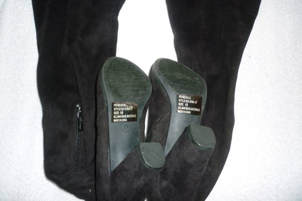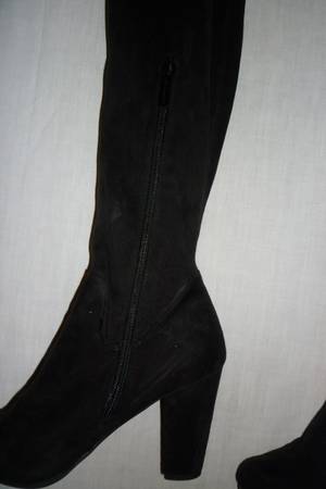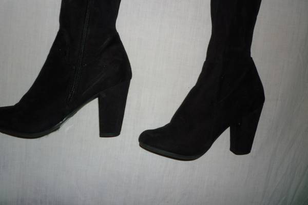 New, Black Man Made Suede Knee High Top Dress Boots, Size 5 1/2, $20. Slip On with Side Zipper, 3" Heel