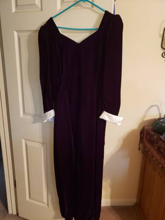 Long Velvet Dark Plum Dress with Satin Cream Ribbon in Back. Sze 15/16 - $50 (Deale)