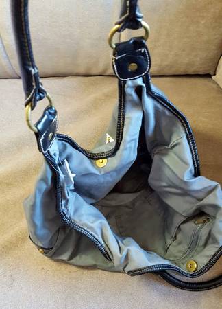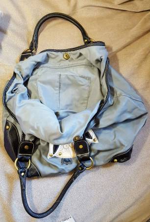 The featured photo is representational only as it is not my photo, but one obtained from the web. Also, the bag looks like a bluish-grey when photographed with my taupe grey couch as the background. I believe the other photos represent the true color better.