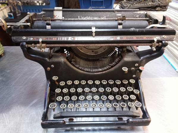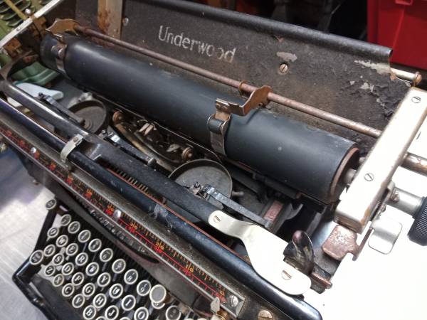 Vintage Underwood Typewriter unrestored - for parts or repair - functional, but not fully - about 90% Mostly just needs a return carriage strap/cord