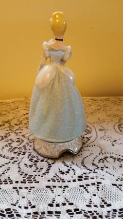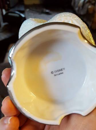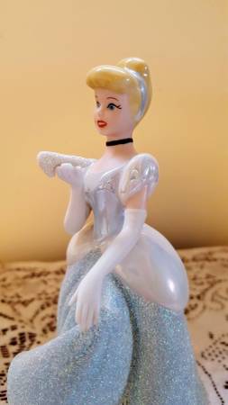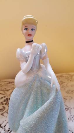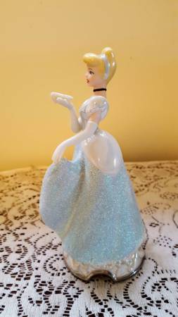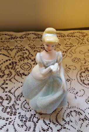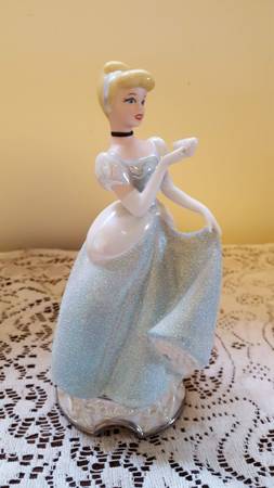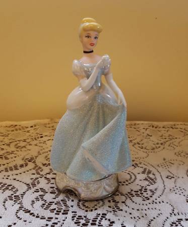 1990s Disney Cinderella Porcelain Figurine, approximately 7-inches tall, made in Sri Lanka. No chips noted. There is slight discoloring underneath the base where the price sticker used to be. This piece is in excellent condition as it was only displayed on a bookshelf. See photos. The pictures do not do this piece justice as the gown has a sandy texture that sparkles. This could make a nice gift for the Disney fan in your life. Note: The photo with the white background is representational only and is not my photo, but one found on the web for the same item.