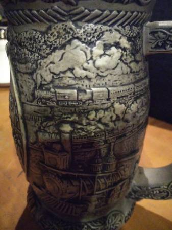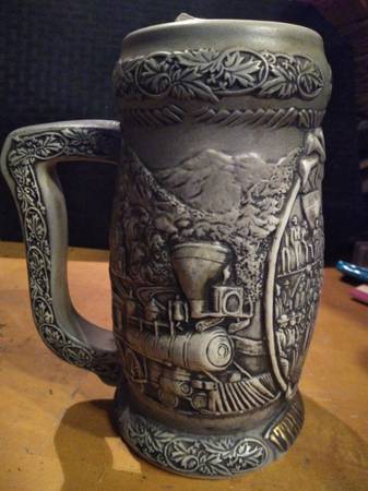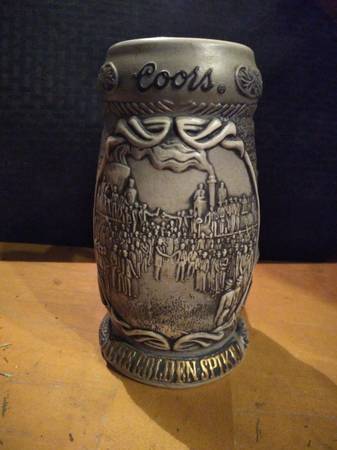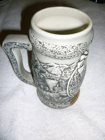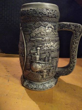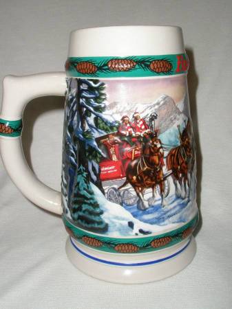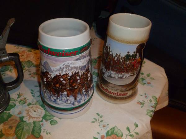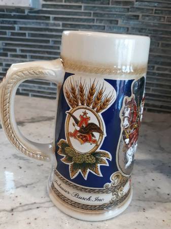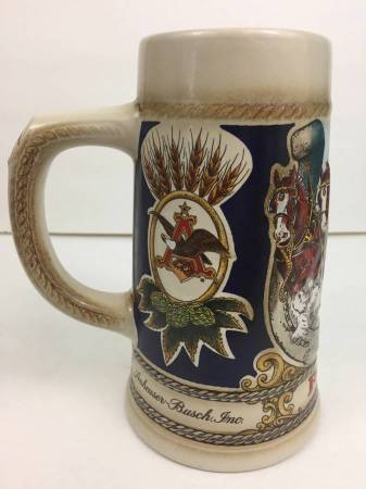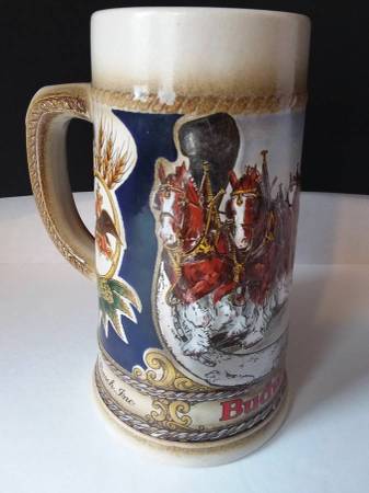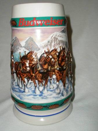 Budweiser Beer Mug Stein Made in West Germany featuring Budweiser Clydesdales and Horseshoe.