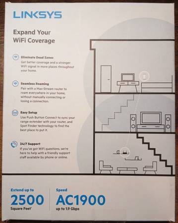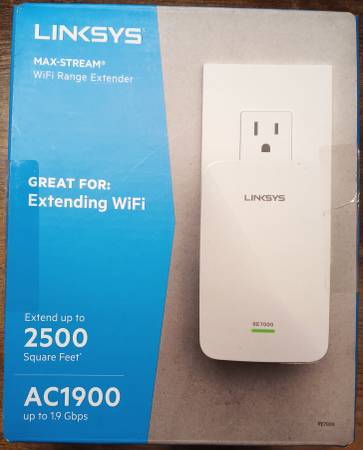 WiFi Range Extender Linksys RE7000 Max Stream AC1900 Gigabit Booster new, open box unused and still in original packaging Shipping available