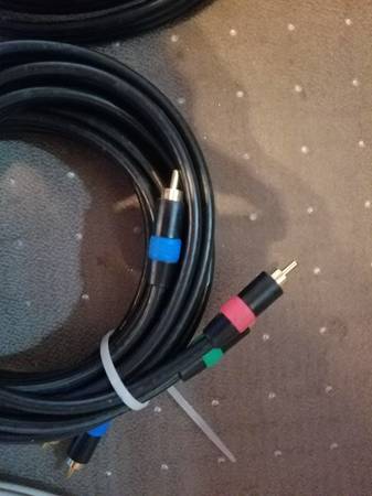 2 - 10 ft Heavy Duty Composite RCA cables (red-white-yellow) 2 - 6 ft Heavy Duty Component Video cables (red-blue-green) 1 - 10 ft Heavy Duty Component Video/Audio cable pair - white -- One audio...