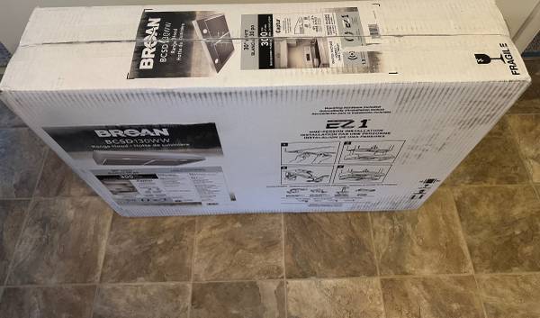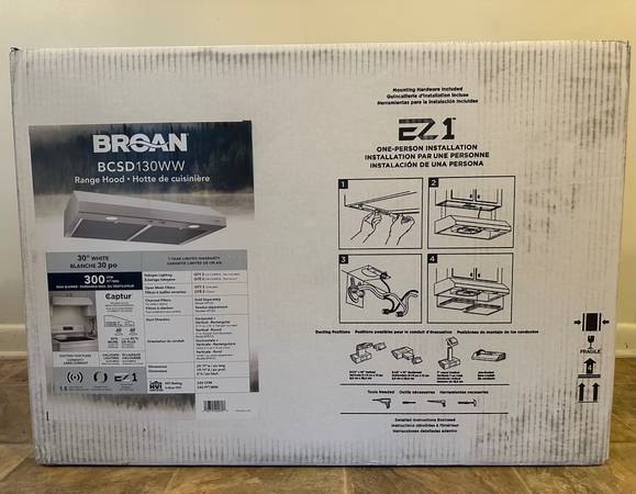 New never used (open box) Broan Nutone BCSD130WW 30" White Under Cabinet Range Hood is a powerful 300 CFM blower designed for efficient ventilation in your kitchen.