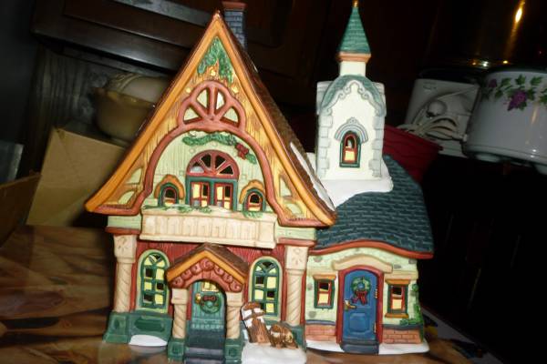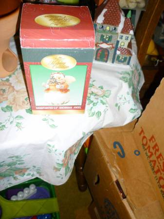 Lots of Christmas Ceramic houses, Figures, Stars, Tree Toppers, and other items, most items New in the box. All very nice, most items $5. ea.