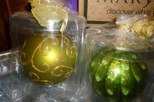 Box filled with New Christmas Ornaments and Balls, from $1 to $5. ea.