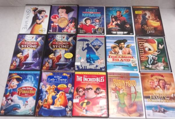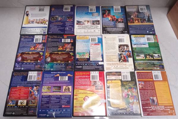 Disney movie lot, both DVD's and VHS tapes 15 DVD's 21 VHS tapes (mostly Masterpiece Collection) All in overall good condition. Some flaws with age and handling (see pics). a couple DVD's new...