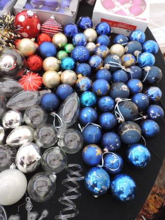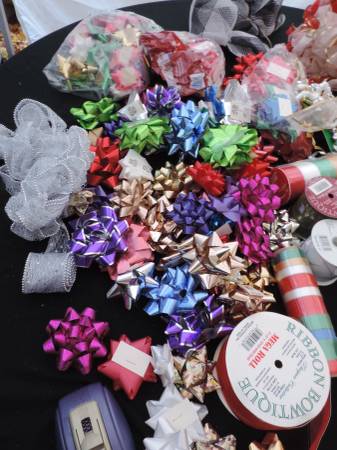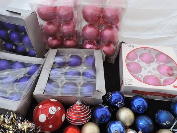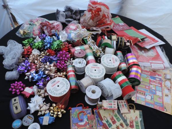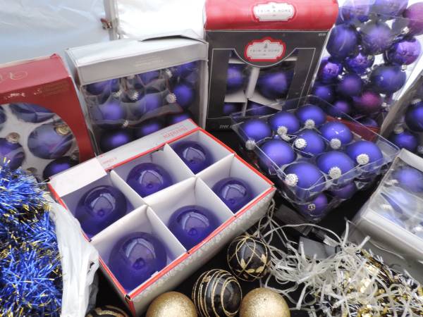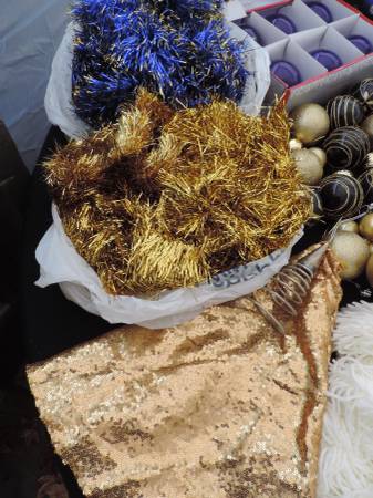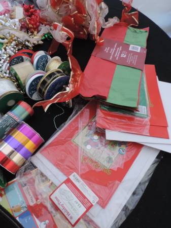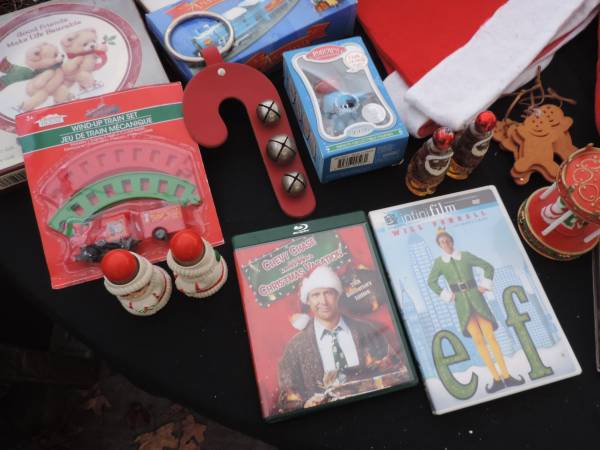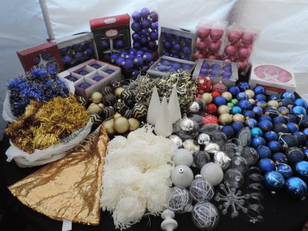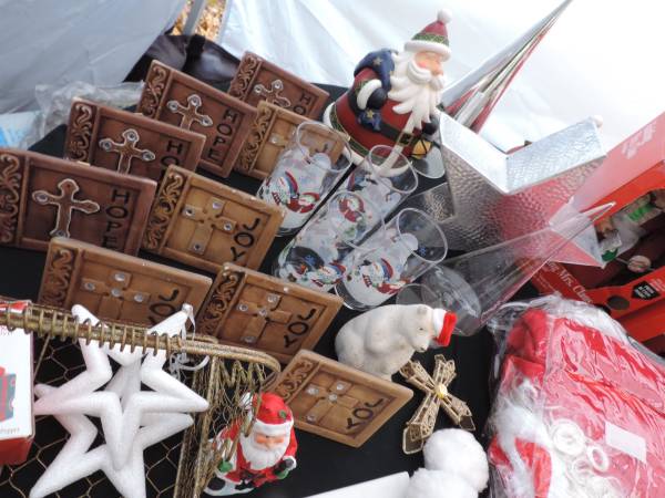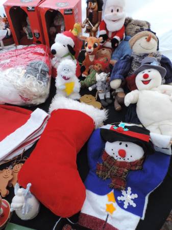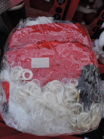 large misc lot of a variety of xmas themed items all in good to new condition includes a santa clause outfit and a 6' plastic collapsable tree w/stand 50.00 for everything