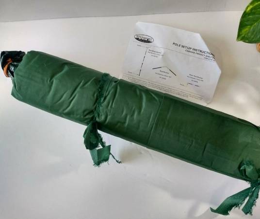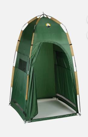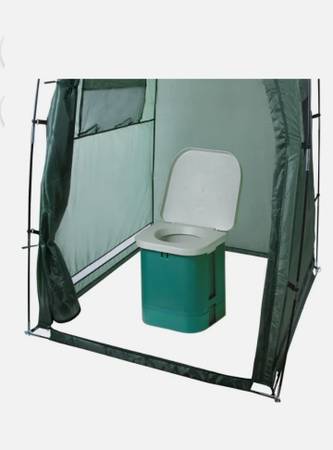 Brand new, still in original box. Open floor for using with a portable shower or toilet. I took the description and first 3 photos from Walmart's website. I pulled it out of the box and out of it's carrying bag for photos but that's as far as I wanted to open it. Instructions are included. 4x4x7'