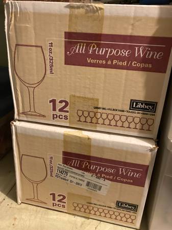 12 Wine glasses in a box . each glass 110z. Have two boxes of 12 glasses in each box.