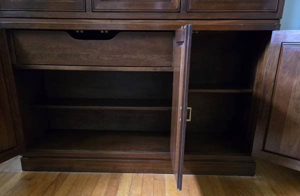 Solid wood with hand-rubbed cherry finish and high-quality oiled brass hardware.