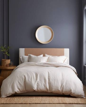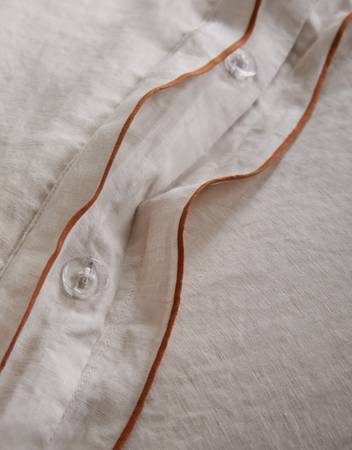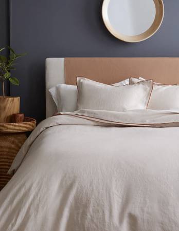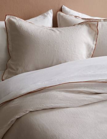 Brand New Linen Duvet Cover by Quince European Linen Double Embroidered Edge Duvet Cover Size: Queen Color Called Sand with Terra Cotta Embroidered Edge CASH ONLY