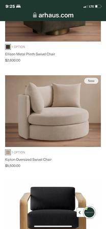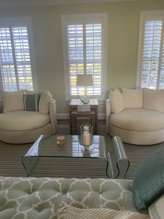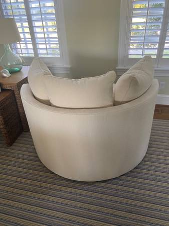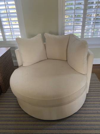 2 cream large circle swivel chairs. $1500 each New at Arhaus today $5500 each. Been in a room that is rarely used. Prefer to sell as pair 3000 total