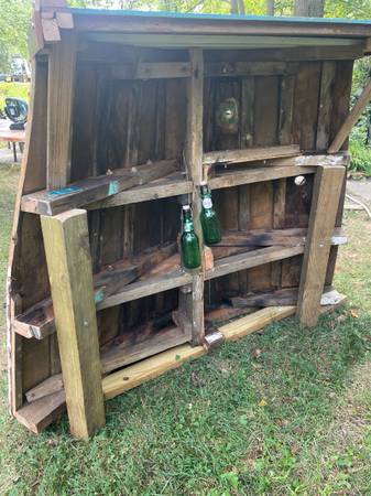 Very cool schooner bow section re-purposed into classic dock/patio nautical bar.