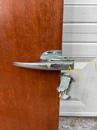 Cooler door is mahogany outside and is gorgeous. Fiberglass inside, with nice hinges and closure mechanism