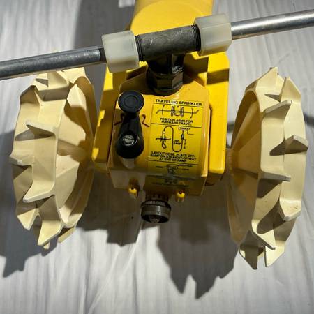 Made of rugged metal in vibrant yellow (so it’s easy to see where it is along its path), it features two traveling speeds and adjustable spray width—providing customizable watering options so you can fully soak a small area or lightly water a large zone.