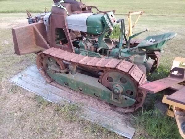 50s Oliver OC-3 with blade. Was a running driving machine till the engine was removed and sold. I had plans of putting a diesel in it with a gear reduction transmission. Comes with the add on blade for the machine though most of everything is there. I have it sitting on tin so the tracks don't get rusty. Price for the machine is 750 but for an extra 500 ill include an auxiliary transmission that will give you 6 forward speeds and 2 reverse. I will not sell the aux transmission separate. No trades, pick up only,sold as is/where is. I have some other small parts and a shop manual for it to go along with it. Bring a trailer and i can assist with loading. If it had the engine it would weigh almost 4,000lbs so bring a decent sized trailer. First come, first serve. Serious buyers only thanks.