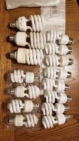 12 CFB's and other types of bulbs. You may test each and every one. All have low use. I will make sure your cost is 70% OFF that of a retail price.. I'll be looking for $2 each on the larger ones.