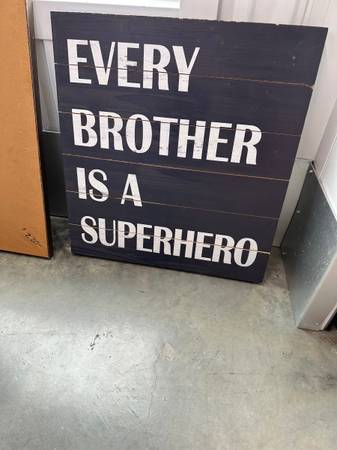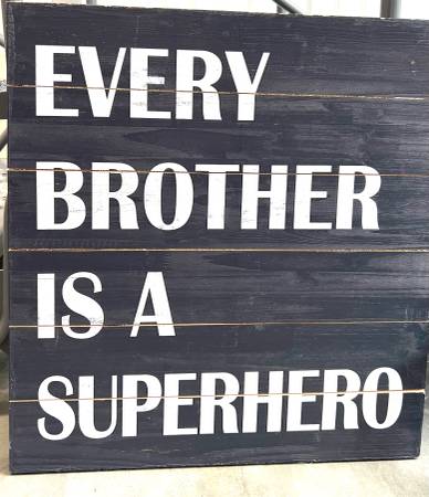 NWT Pottery Barn Wall Art Every Brother is a Superhero Art Approx. 25”x23” Wood Planks in a blue gray with white letters CASH ONLY