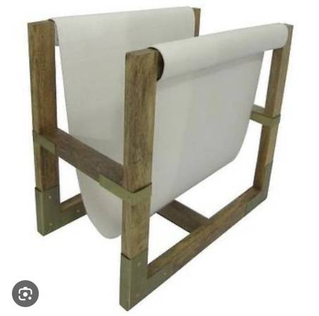 New With Tag Magazine Rack by Nate Berkus The Campaign wood & leather Magazine Rack Measures approx 17” hog x 11” wide and 18” deep Just been stored and not used CASH ONLY