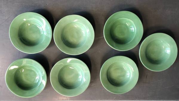 Pottery Barn 7 wide rim bowls and Platter Sausalito dinnerware GREEN...
