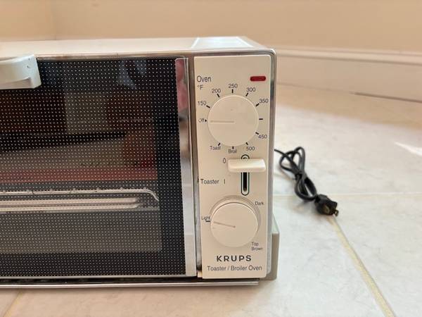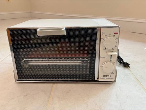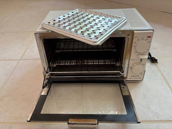 As pictured. Used rarely. This toaster oven is clean and works great! Includes 8 1/2 x 11 SILPAT cooking mat (not pictured). Made in France and has a value of $15.
