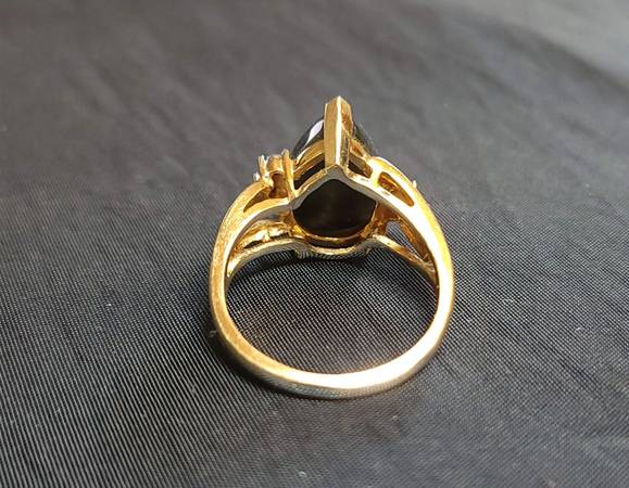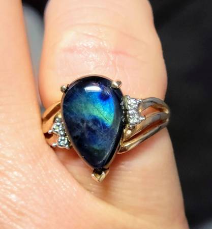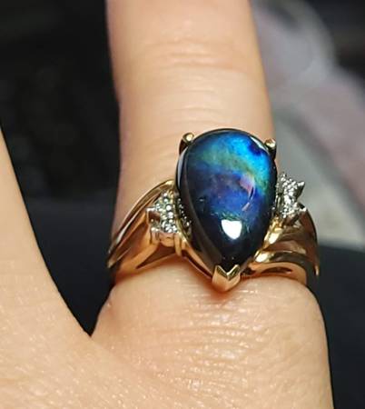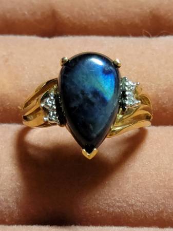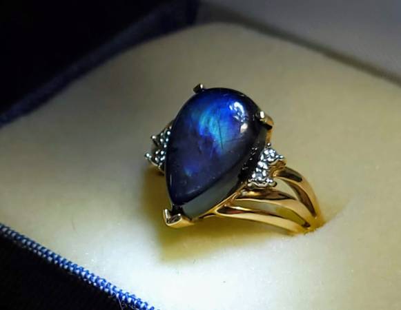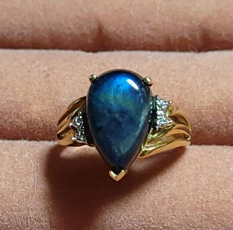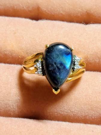 Vintage Pear-Shaped Labradorite Ring with Diamonds 10k Gold: $200; Size 8.