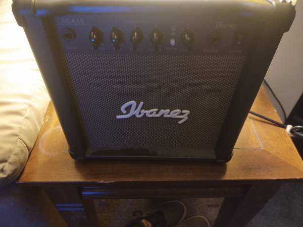 Couple practice amps. Beatles t-shirts and memorabilia. Rock posters. Lots of CDs. PA equipment. Mixing boards.